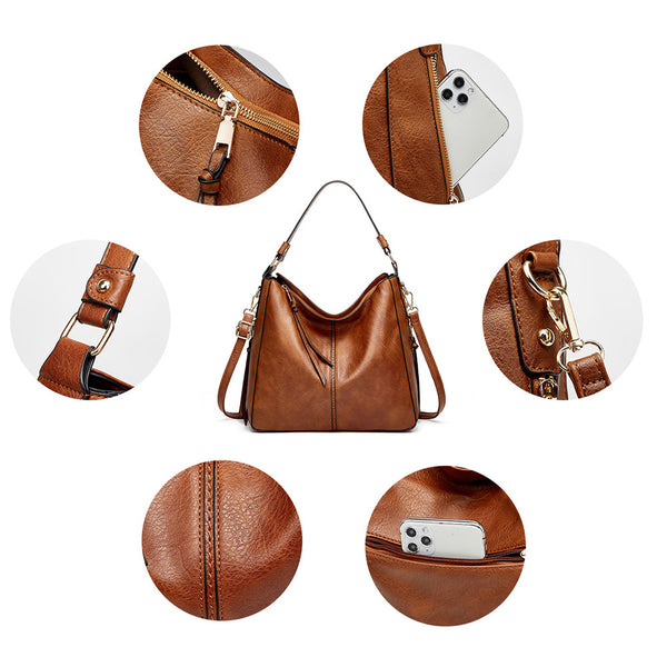 1. This womens purse set was made of high-grade PU leather, durable and waterproof. Classic leather veins give the women handbags a gentle feeling. We also used supreme cloth to made the lining.
