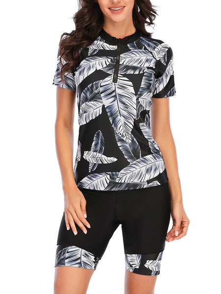 · Features: Two Piece, Push Up Padded, Without Underwire, Tummy Control, Shorts, Short Sleeve, Zipper