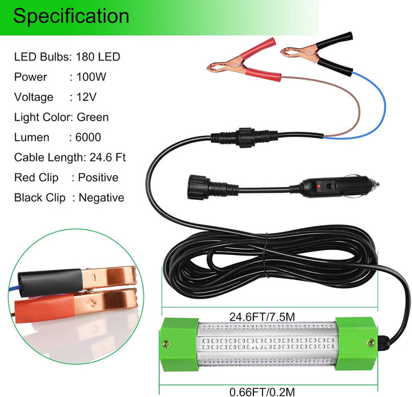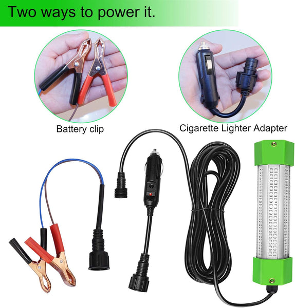 This underwater led fishing luring light is applied in deep water fishing, comes with high tensile aluminium alloy structure and premiun leds, this underwater fishing light is made to last and energy saving. Package includes battery clip and cigarrette adaptor, you can easily attach it to power, with super long 24.6Ft cable, you can use it for dock fishing, boat fishing, kayak fishing, pond fishing, saltwater and freshwater, it's totally a game changer for night fishing, a must have for night fisherman and crabber.