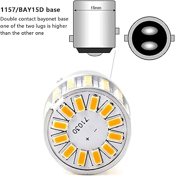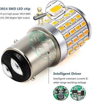 - (Pack of 2 1157 bulbs) Color: amber yellow; 72 pcs high power & high brightness 3014 SMD LED chips, 360 degree light output; Voltage: DC 12V-24V