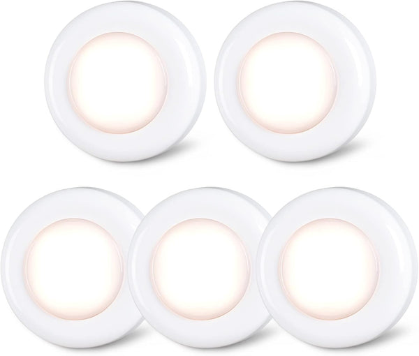 Brightify 5 Pack 2.8” Push Tap Lights, Stick on Touch Puck Lights AAA Battery Operated, LED Sticky Button Lights for Classroom, Kitchen, Under Cabinet, Closet