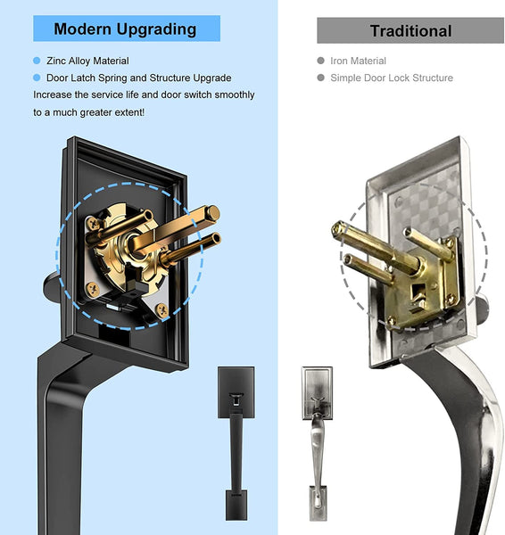 MODERN UPGRADING HANDLE SET with Lever: Our Modern Deadbolt Set with Zinc alloy material and door latch spring and structure upgrade, DIFFERENT FROM TRADITIONAL STYLE),increase the service life and door switch smoothly to a much greater extent!