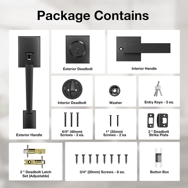 FRONT DOOR LOCK SET MATCHES: Brightify entry door lock set is including deadbolt, door handle, door lever, adjustable latch bolt and 3 keys. Our matte black front door handle is matches for front doors, back doors or office doors, anywhere keyed entry and security is needed, create a safety, warm, comfortable living space for your family and children!