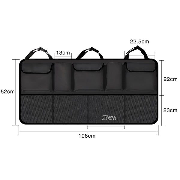 2. Including 4/8 separate pockets to hold and classify various things like toys, tissue box, tools, water bottles, umbrella, drinks, books, groceries, sports equipment, etc. for travel and daily routine essentials.