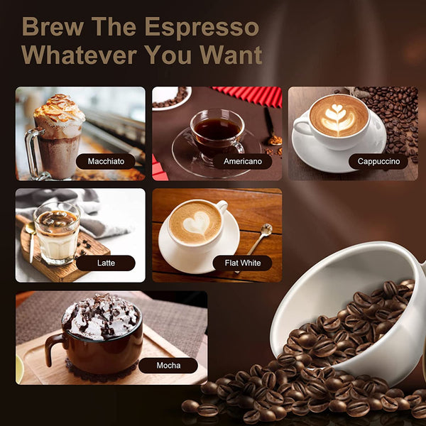 - 2 IN 1 ESPRESSO MACHINE The coffee machine with milk foam can be used as expresso coffee machine, cappuccino machine and latte machine.Brew the flavor taste espresso coffee and foaming