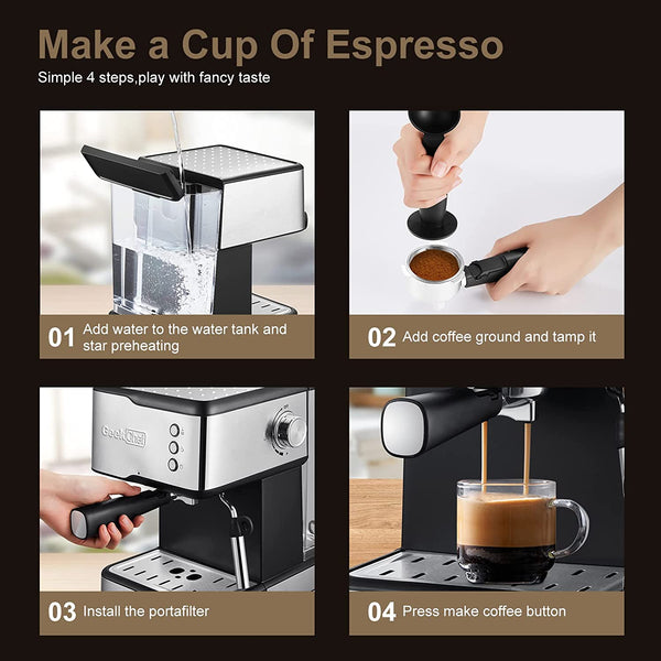 Geek Chef 20 Bar Professional 2-in-1 Espresso Machine with Milk Frother.