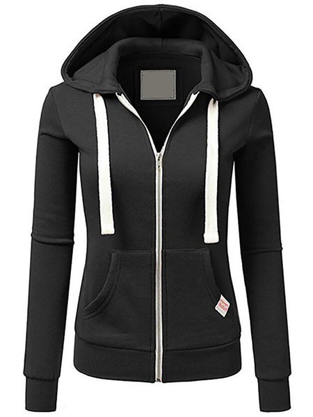 - Style - Women's Zip Up Hoodie, Solid Color Casual Tops, Long Sleeve Tunics Drawstring Pullover Sweatshirts with Pockets