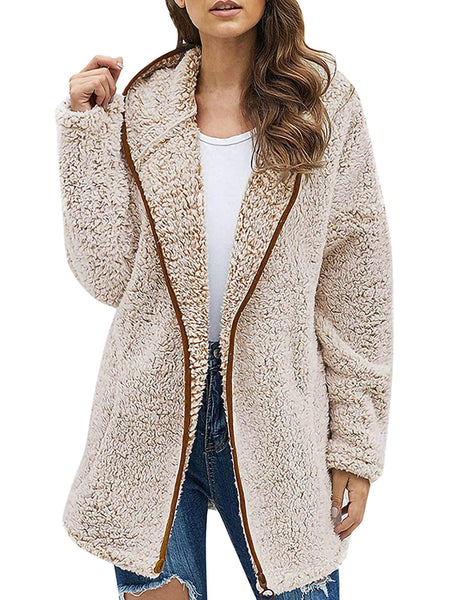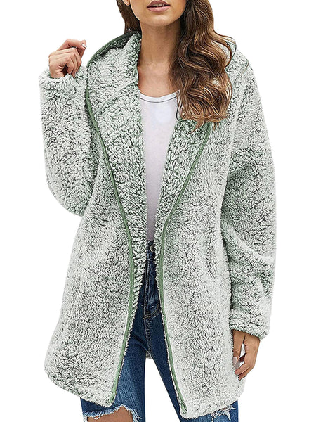 Style:Women Winter Warm Coat,Fuzzy Fleece Full Zip Up Jackets Outwear,Fluffy Hooded Cardigan Open Front,Casual Sherpa Hoodies
