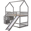 The simple and modern design is suitable for most family. This house-shaped twin room is equipped with two bunk beds to save your floor space. This bunk bed is made of pinewood and MDF board, which has good stability and safety and can withstand high-weight play without dangerous swings. Equipped with people's favorite slides,which can be put on left or right, it is convenient to get out of bed and adds entertainment functions.And the Staircase can be put on left or right either.The full-length guardrail on the bed ensures the safety. Combining rest and entertainment functions, this bunk bed with a slide will become a popular item in your bedroom.
