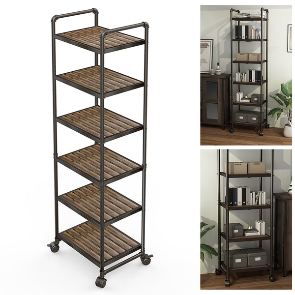 This 6-layer storage shelf with casters combines retro style with deep storage. Modern home decoration is very suitable for displaying and storing items in your living space. Textured colors and exquisite appearance make it a perfect match with the furniture in your home. Simple setup instructions, including all hardware and tools.