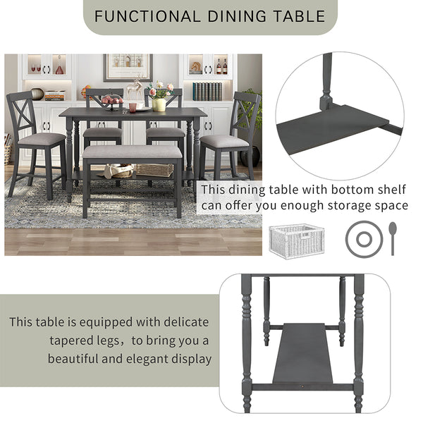 • Elegant Appearance: The 6-piece counter height dining set consists of a table, four chairs and a bench. The multifunctional table is designed to fit in any space, and its classic, elegant design creates timeless appeal. Perfect to gather around, this essential table complements any room Decor.