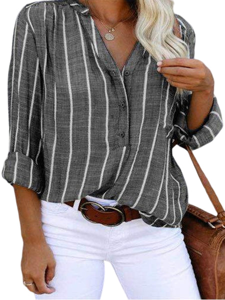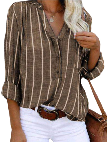 - Style - Stripe Casual Top, Boho Shirts for Women, V Neck Loose T-shirt, Summer Beach Blouse, Tunic Tops, Long Sleeve Fall Tops