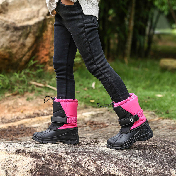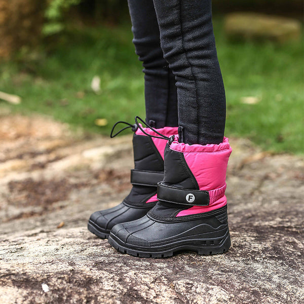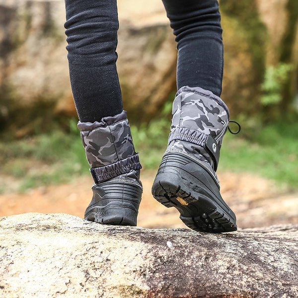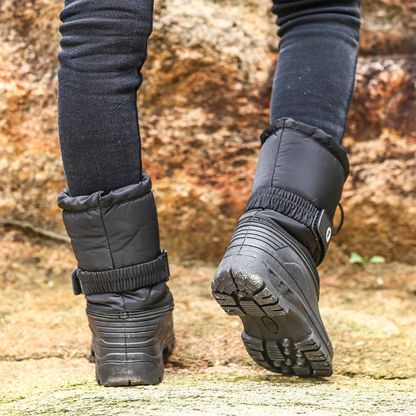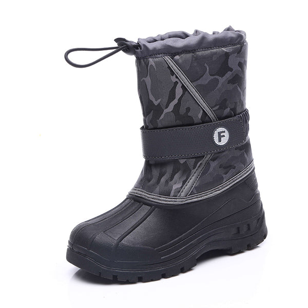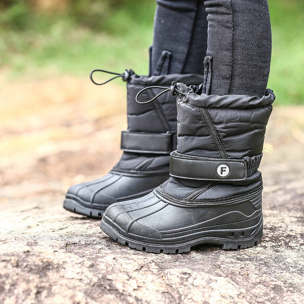 1. Waterproof winter boots, fleece lining, classic winter boots design, ankle height, magic tape design.