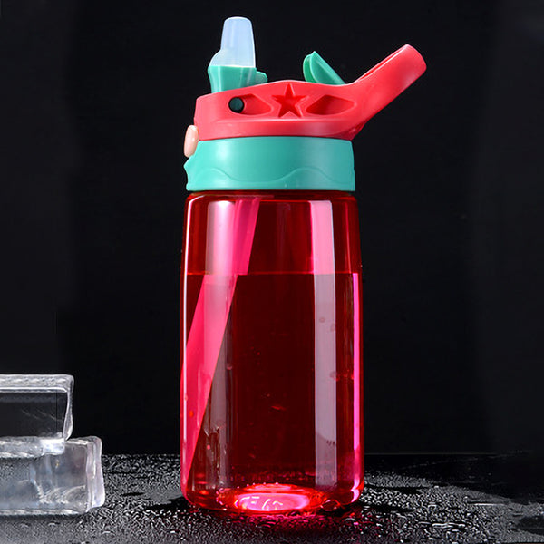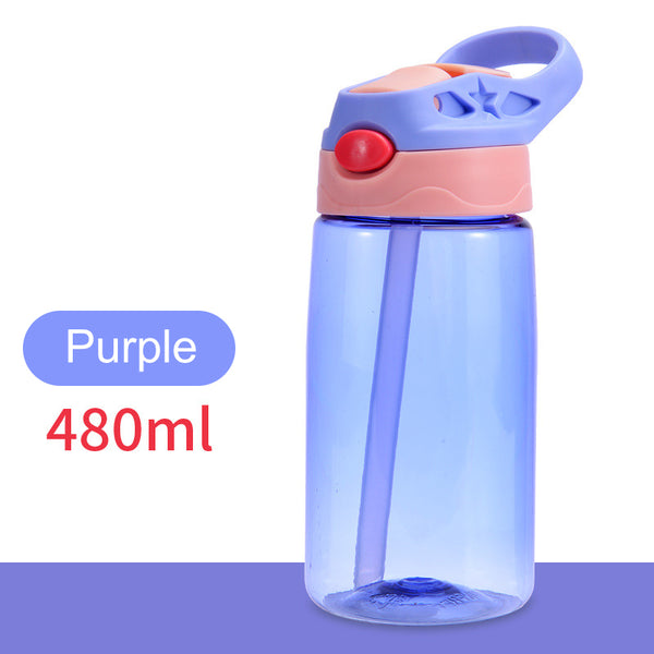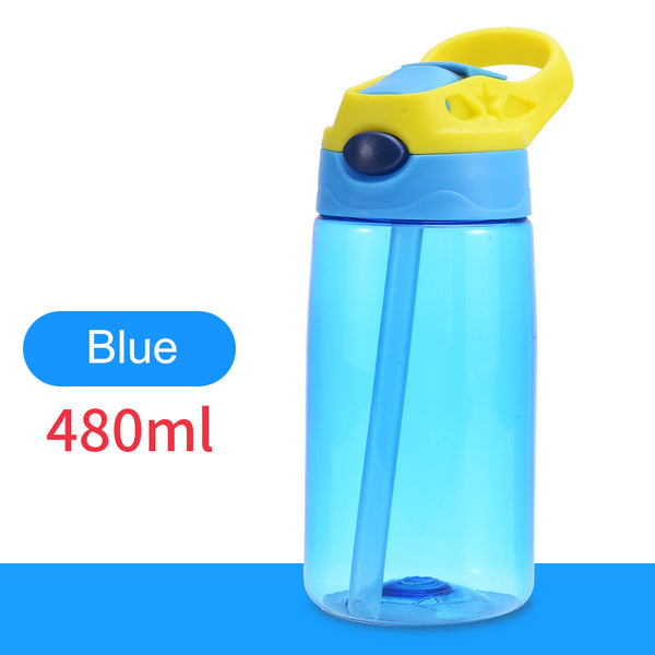 Kids Children Straw Water Bottle Plastic Drinking Cup Leak Proof Portable Sports Student School Suction Cup 16.2oz 480ml BPA Free