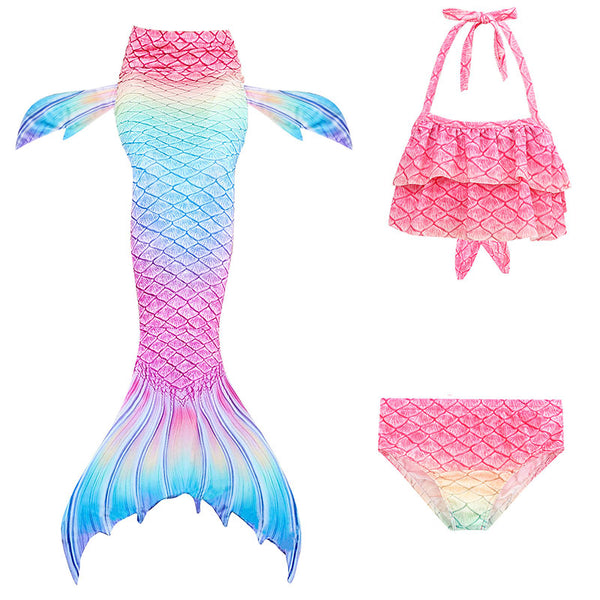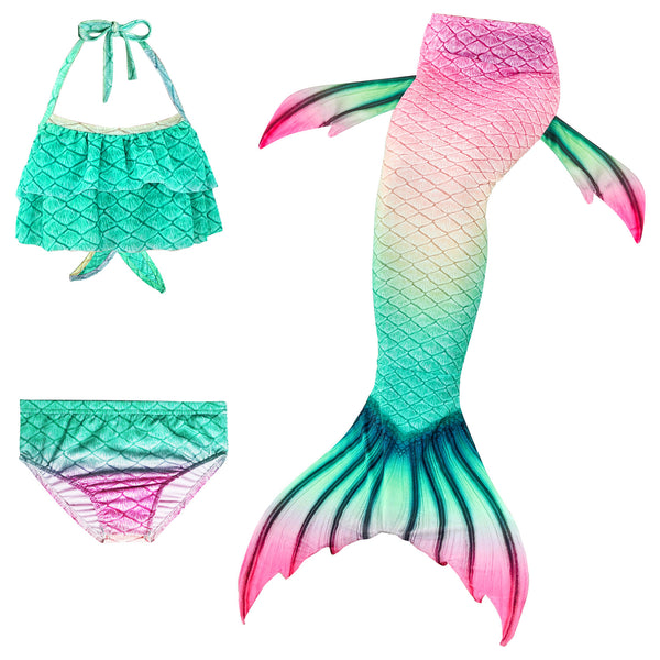 · The 3 Pcs mermaid tail bikini sets is good gift for all girls who have a mermaid princess dream. She will look like a real mermaid princess after wear the mermaid swimsuit. Great for pool party, swimming, cosplay.