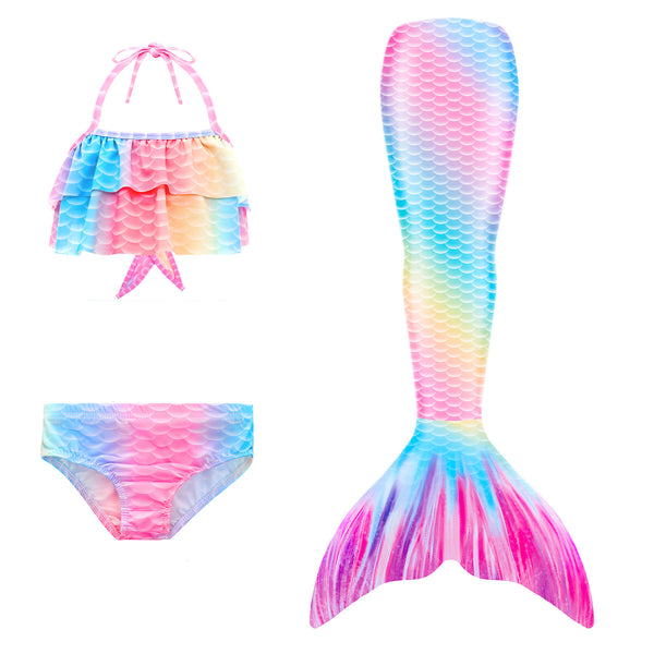 Kids Girls 3Pcs Mermaid Tail Swimming Bikini Set Swimwear Swimmable Costumes Kit 110-150