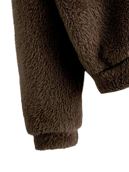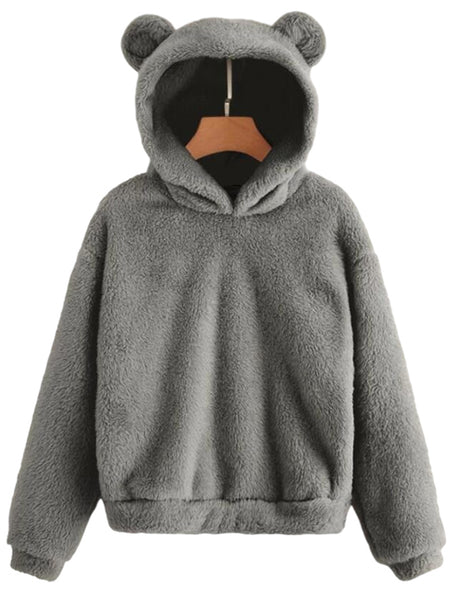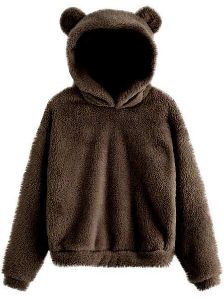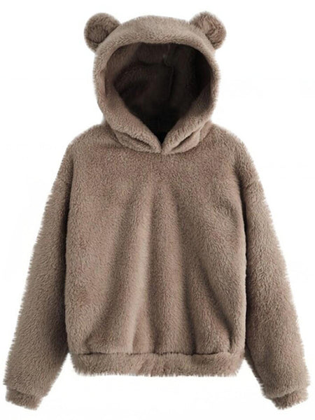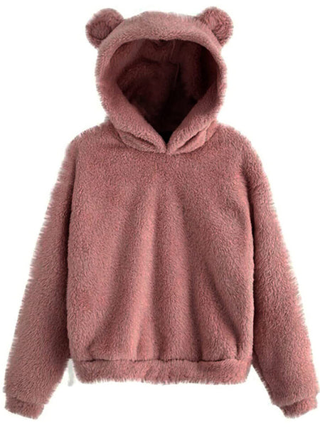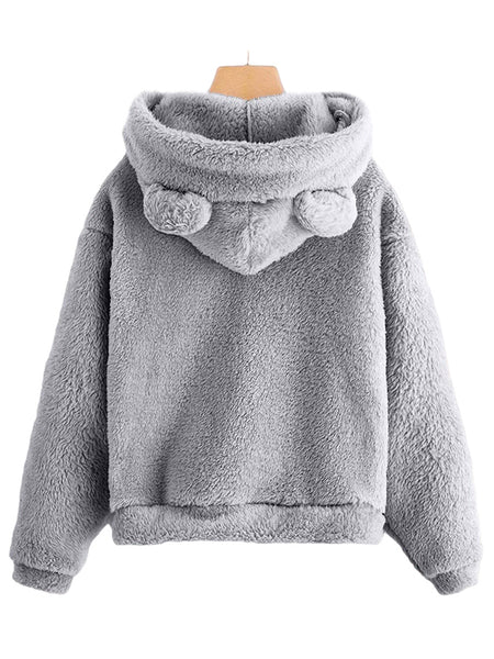 Style: Women Rabbit Ear Fluffy Coat Fleece Hooded Solid Color Keep Warm Outwear Coat
