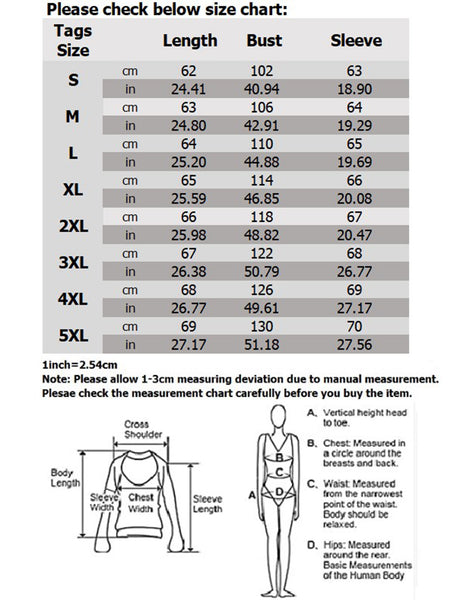 Size: S, M, L, XL, XXL, 3XL, 4XL, 5XL (Follow the size chart to select please)