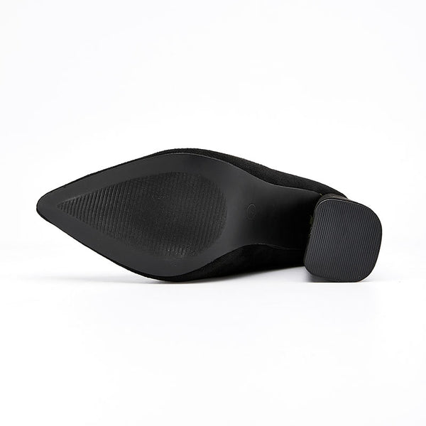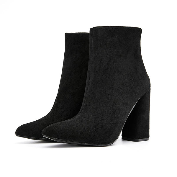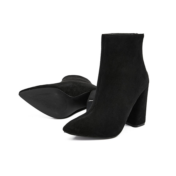 1. A great and comfortable design, suede upper, pointed toe, block heel, easy pull-on style with zipper, finished with lightly man made insole for the best comfort.