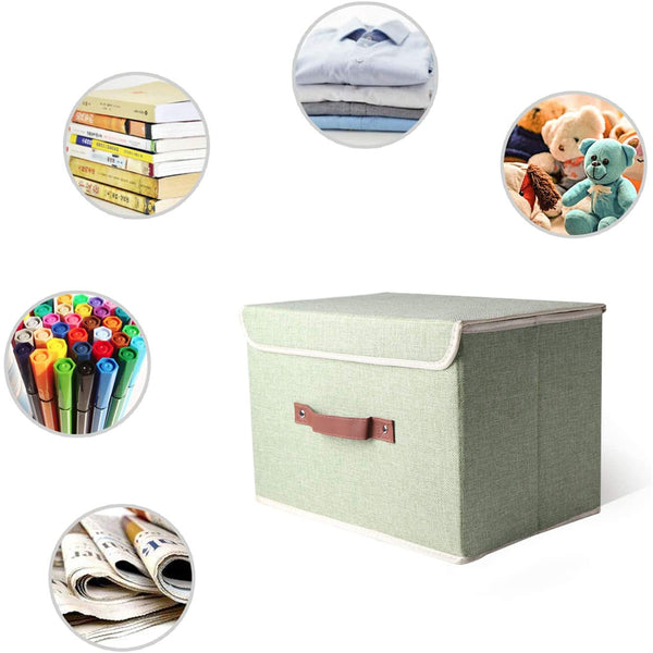 Large Collapsible Storage Bins Linen Fabric Foldable Storage Boxes Organizer Containers Baskets Cube with Cover for Home Bedroom Closet Office Nursery