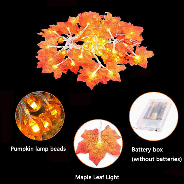 LED Maple Leaf & Pumpkin Twinkle Lights Indoor Fairy String Light Fall Garland Lights Decor for Halloween Christmas Indoor Outdoor Garden