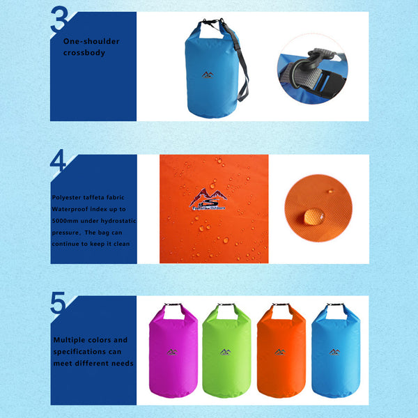 1. Waterproof dry bag, a must have for camping, fishing, festivals, beaches, hiking, canoeing, backpacking etc. Keep your items inside perfect and dry.