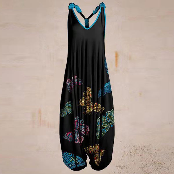 Long Romper Women V Neck Tank Tops Long Jupmsuits Loose Waist One Piece Bodysuit