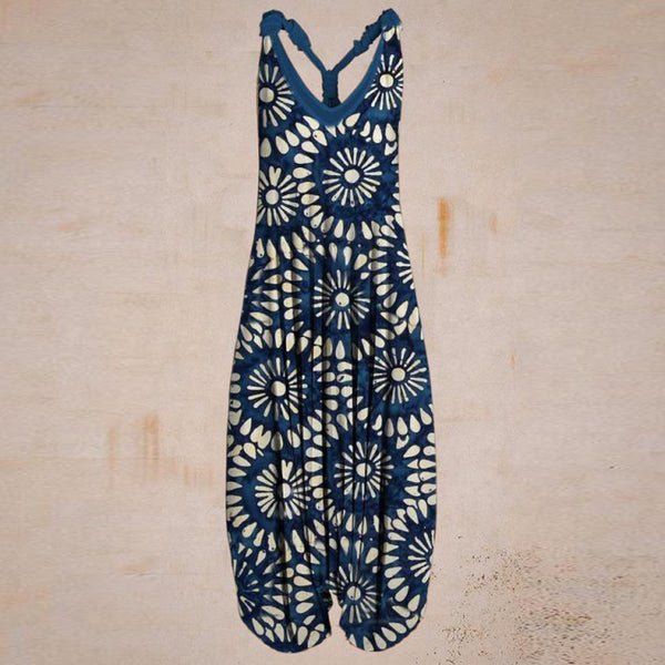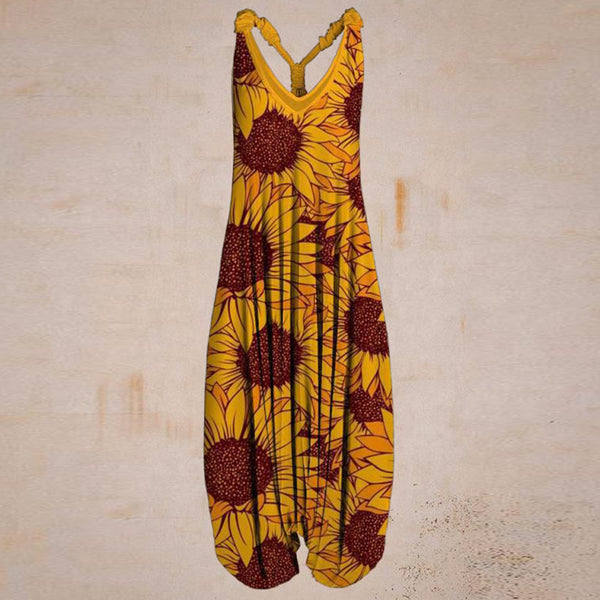 2. LONG JUMPSUITS - daisy printed jumpsuit, summer jumpsuit rompers. twisted wide shoulder strap styles, Y shape back elastic straps loose waist v neck one piece long jumpsuit playsuit rompers with loose stretchy, light weight and comfortable polyester and cotton fabric to wear.