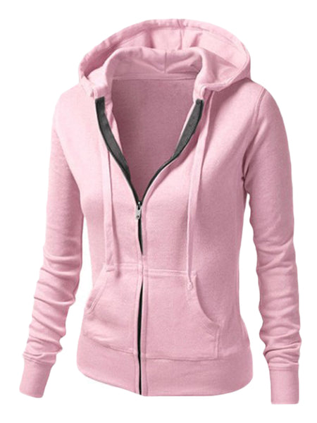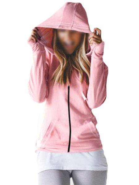 ·Long Sleeve Hooded Tops,Autumn Winter Leisure Tunic Jacket,Plain Color Outwear