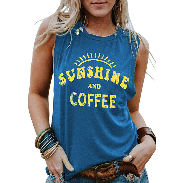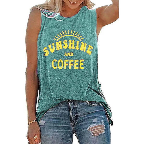 Style: Women Printed Crew Neck Vest, Summer Tank Top, Sleeveless Tee Shirt, Casual Pullover Tunic