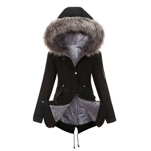 - Hood with extra soft artificial lamb lining , keep you warm and makes the jacket more stylish