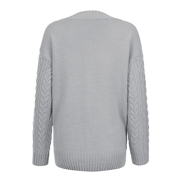 Features: V neck,solid color, long sleeve,cable knit,casual boho pattern,basic design.