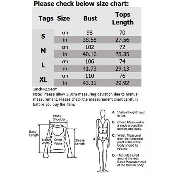 3. Please allow 1-3cm differs due to manual measurement, thanks. (All measurement in cm and please note 1cm=0.39inch, 1inch=2.54cm)
