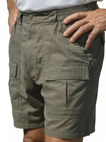 Men Casual Multi-pockets Cargo Short Mens Leisure Bottoms Elastic Waist Workout Solid Color Lounge Beach Shorts