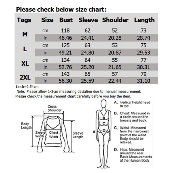 Size: M, L, XL, XXL (Follow the size chart to select please)