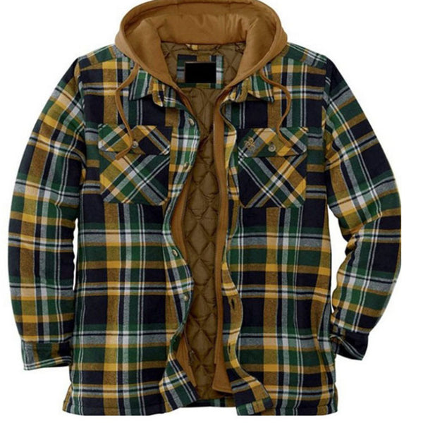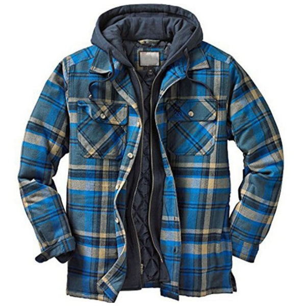 Style: Men's Plaid Stripes Print Jacket Zip Top Hooded Long Sleeve Coat Thicken Coat