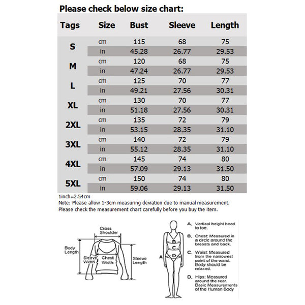 Size: S, M, L, XL, XXL, 3XL, 4XL, 5XL (Follow the size chart to select please)