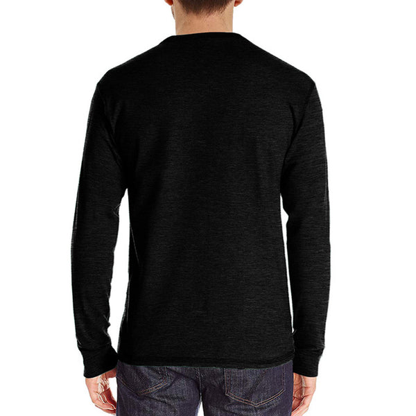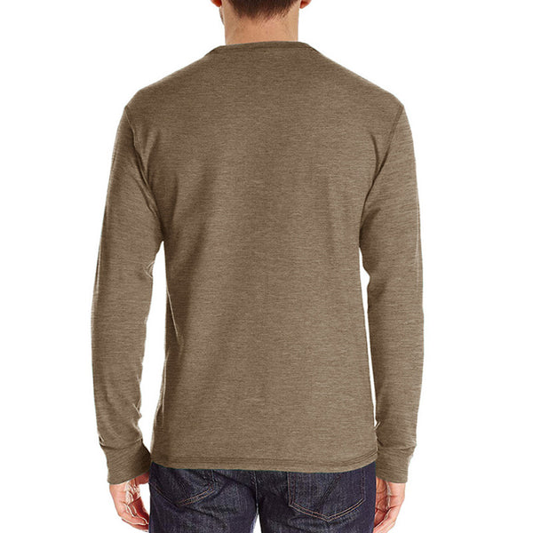 Men's Solid Color Chest Pocket Long Sleeve Button Round Neck Bottoming T-shirt