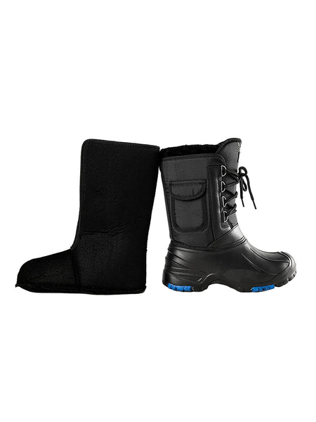 2. This snow boot features a slimming shaft with an round toe shape. The lace up creates ease of access, and the decorative detail showcases a beautiful design on a leather boot.