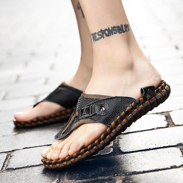 2. Men flip flops with thick cushioned sole and rugged foot bed have supplies great traction for handle long walks.