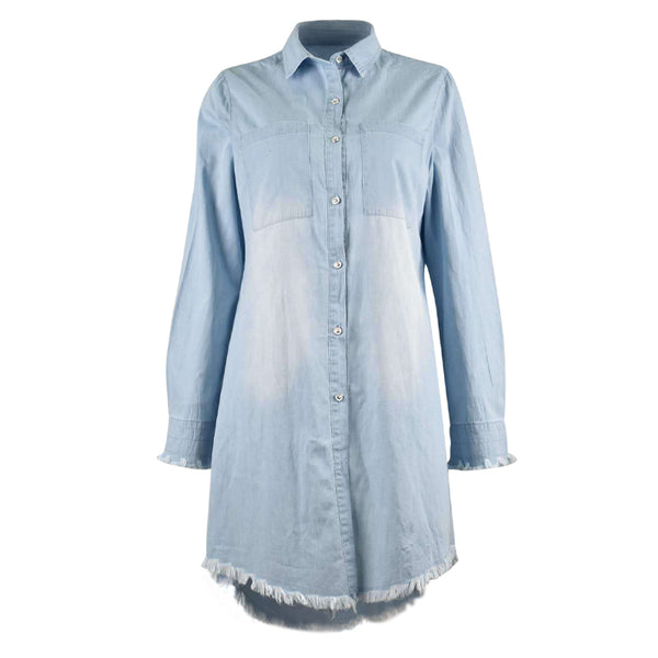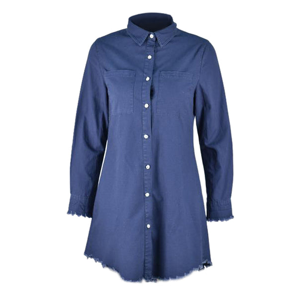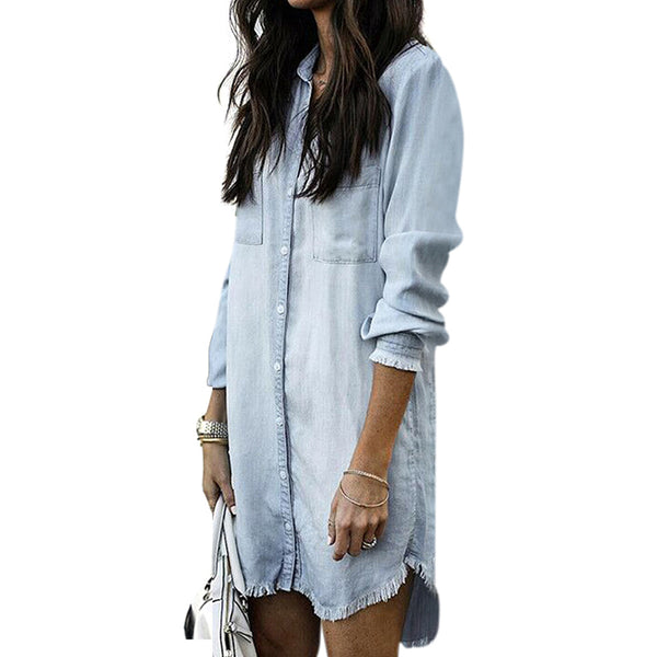 Type:Women Denim Shirt Dress,Denim Long Sleeve Tassel Blouse Tops ,Ladies Casual Denim T-Shirt,Mini Shirt Dress