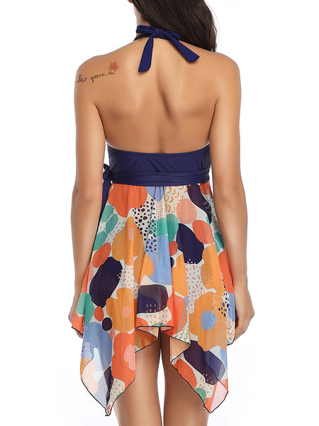 Plus Size Women Swimdress Two Piece Swimwear Mesh Swimsuit Push Up Padded Halter