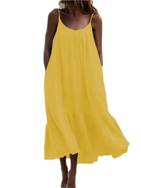 2. Design:A Sexy Bohemian Solid Color Long Dress. Spaghetti Strap, Scoop Neck Design Makes You Look Attractive in the Crowd. A Classic Wardrobe Staple Sundress.