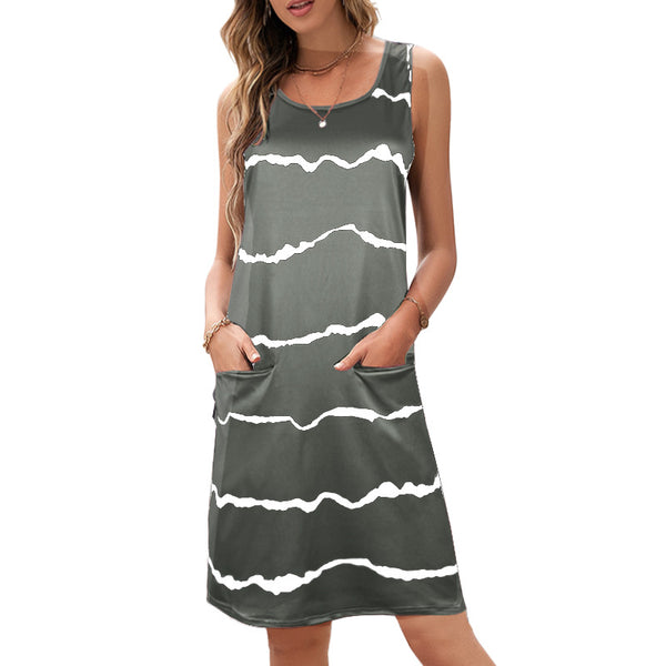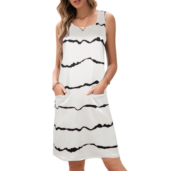 Style: Women Midi Tank Dress, Casual Loose Dresses, Summer Sundress, Bohemian Dresses, Beach Dress, Baggy Cover Up, Striped Pajamas Dress