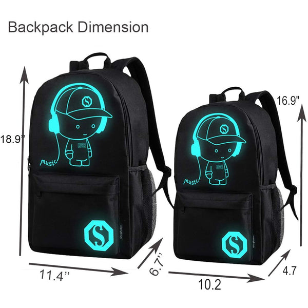 - 【FASHION LUMINOUS BACKPACK】The best part of this stylish cool cartoon bag set is after absorbing light, after absorbing light in the day about 10-20 minutes, you can see the fluorescent effect in the dark and can keep about 4-6 hours.