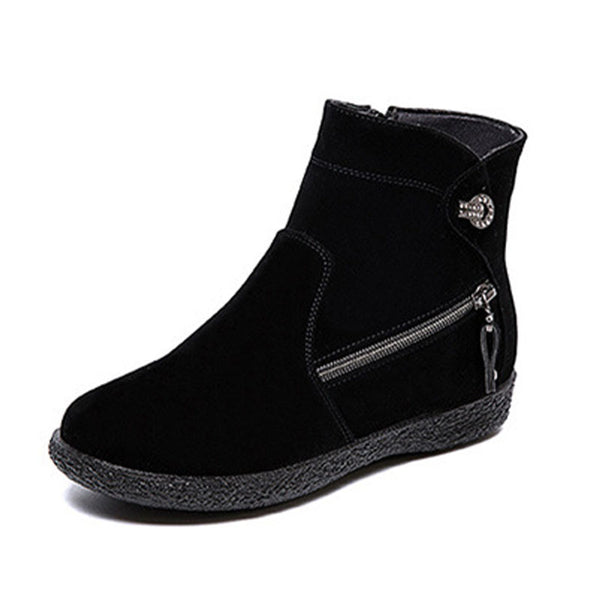 1. A great and comfortable design, featuring faux fur lining, suede upper, round toe, chunky heel, easy pull-on style with zipper, finished with lightly man made insole for the best comfort.
