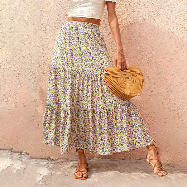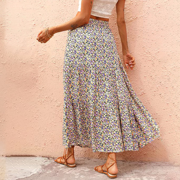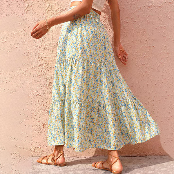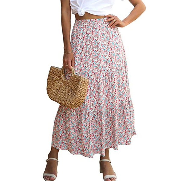 3. Feature: Women Floral Print Boho Long Skirts, Ruffled Hem Maxi Skirts, Casual Lightweight Flowy Long Skirt, High Waist Layered Skirt