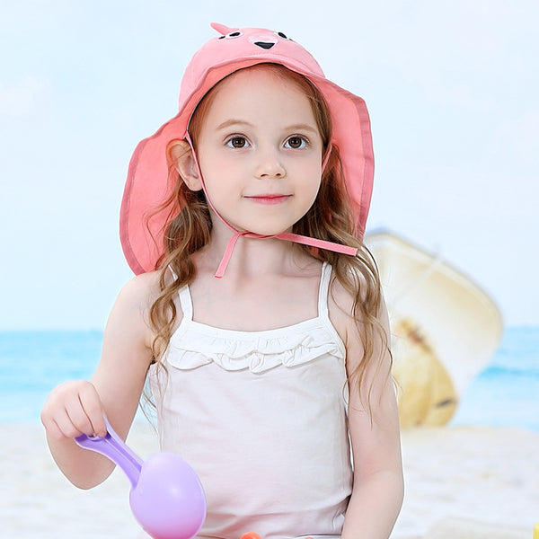 Toddler Baby UV Protection Sun Hats Cute Cartoon Beach Swim Caps Foldable Wide Brim Fisherman Bucket Hats for Girl Boy Kids
