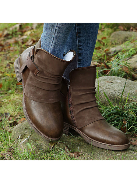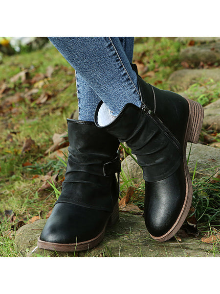 Style: Lady Solid Color Round Toe Chunky Ankle Boot