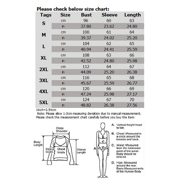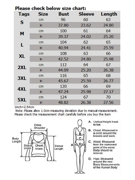 Size: S, M, L, XL, XXL, 3XL, 4XL, 5XL (Follow the size chart to select please)